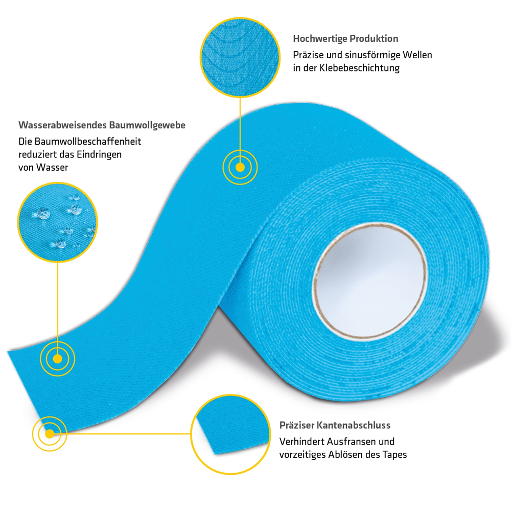 Das Tape ist wasserresistent und kann beim Duschen oder Schwitzen problemlos getragen werden. Es ist latexfrei und sehr hautfreundlich, wodurch es sich auch für empfindliche Anwender eignet.
