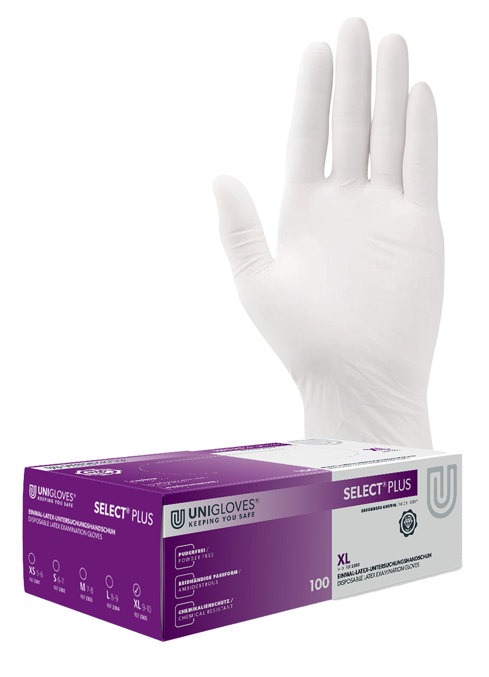Unigloves Select Plus Latexhandschuhe – 100 Stück/Box, Größen XS–XL