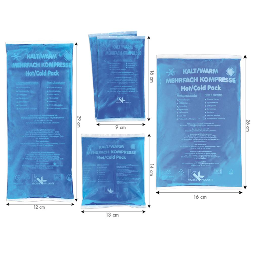 Die Kalt-Warm-Kompressen und Kältesofortkompressen können schnelle Hilfe bei Prellungen, Verstauchungen, bei Gelenkschmerzen, Fieber, Zahnschmerzen, Insektenstichen, nach Operationen und Blutergüssen bieten ! Die Kompressen sind sehr praktisch zum Mitnehmen auf Ausflügen oder Sportaktivitäten. Sie können sowohl zur Kälte- (Kühlschrank oder Truhe) als auch zur Wärmebehandlung (Mikrowelle) angewendet werden.