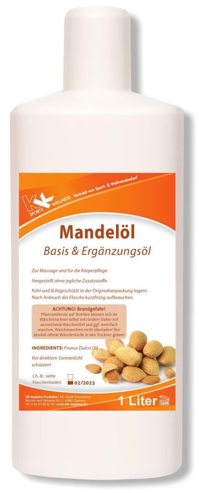 KK Mandelöl ist hervorragend als Massageöl geeignet, da es langsam einzieht und optimale Gleiteigenschaften besitzt.