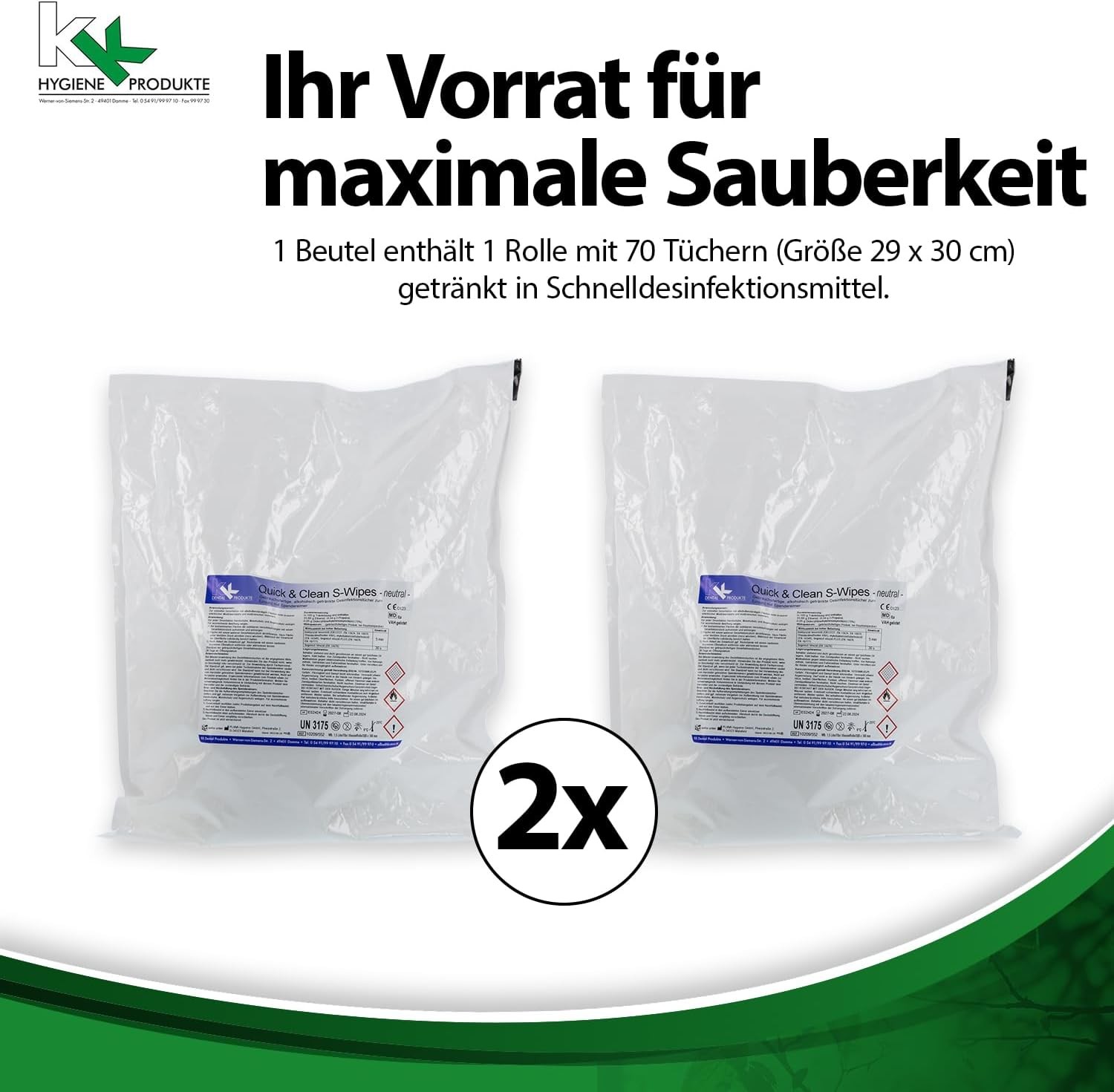 KK Quick & Clean S-Wipes Classic "ready to use" Nachfüllbeutel 2 x 70 Tücher/Rolle