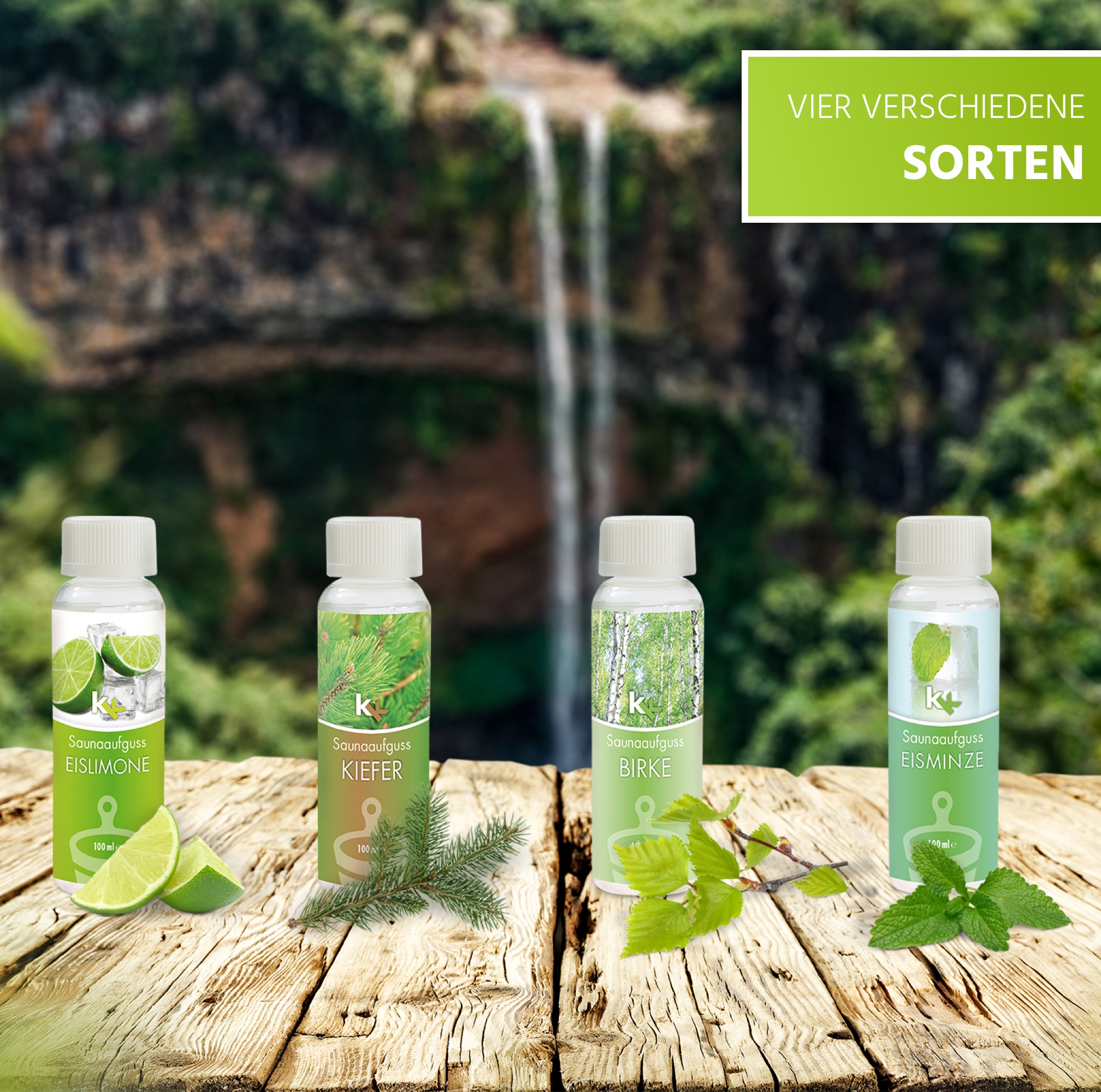 Regelmäßige Saunagänge wirken positiv auf den gesamten Organismus. Sauna ist ein Schwitzbad, welches man in verschiedenen Formen nutzen kann, z.B. gibt es die finnische Sauna, das Dampfbad und das Warmluftbad etc. Wohltuende Wärme, die den Körper umgibt und verschiedene Düfte, die die Sinne anregen. Die Abfolge von Hitze mit anschließendem Kaltbad entspannt die Muskulatur und hat neben physiologischen Effekten, wie der Anregung des Kreislaufs, des Stoffwechsels, des Immunsystems und der Atmung, vor allem auch eine wohltuende Auswirkung auf das allgemeine Wohlbefinden. Die KK Sauna-Düfte, angereichert mit natürlichen ätherischen Ölen, unterstützen diese Wirkung zusätzlich.