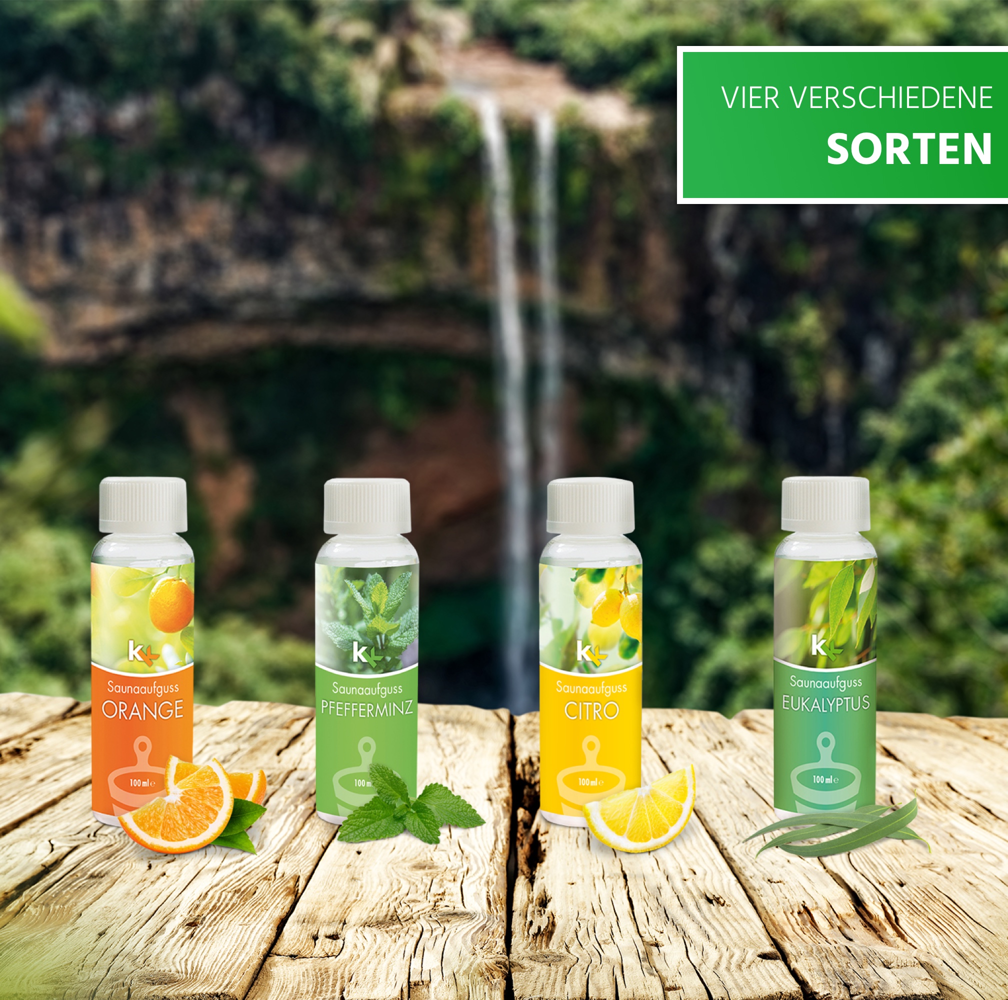 Regelmäßige Saunagänge wirken positiv auf den gesamten Organismus. Sauna ist ein Schwitzbad, welches man in verschiedenen Formen nutzen kann, z.B. gibt es die finnische Sauna, das Dampfbad und das Warmluftbad etc. Wohltuende Wärme, die den Körper umgibt und verschiedene Düfte, die die Sinne anregen. Die Abfolge von Hitze mit anschließendem Kaltbad entspannt die Muskulatur und hat neben physiologischen Effekten, wie der Anregung des Kreislaufs, des Stoffwechsels, des Immunsystems und der Atmung, vor allem auch eine wohltuende Auswirkung auf das allgemeine Wohlbefinden. Die KK Sauna-Düfte, angereichert mit natürlichen ätherischen Ölen, unterstützen diese Wirkung zusätzlich.