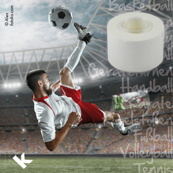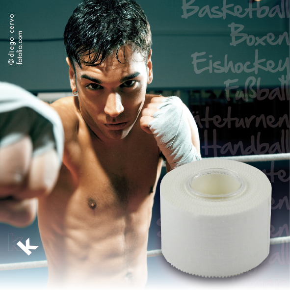 Sport-Tape aus hochwertigem, unelastischen Baumwollgewebe, das mit einem gut haftenden Zinkoxydkleber einseitig beschichtet ist. Es zeichnet sich durch seine Hautfreundlichkeit und aufgrund seiner Randbezackung, durch gute Handreißbarkeit in Längs- und Querrichtung aus.