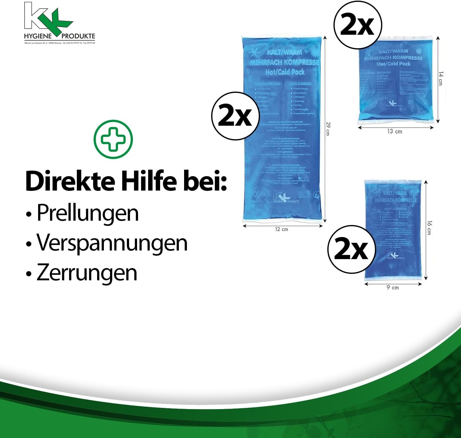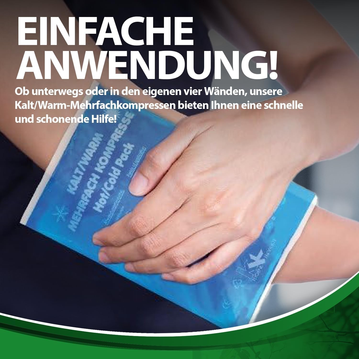 Kalt-Warm-Kompressen sind vielseitige medizinische Hilfsmittel zur Schmerzlinderung und Entzündungsreduktion. Sie können entweder gekühlt oder erwärmt angewendet werden, je nach Bedarf. Die Kälte hilft, Schwellungen zu reduzieren und akute Verletzungen zu behandeln, während die Wärme Muskelverspannungen löst und chronische Schmerzen lindert. Die Kompressen sind einfach anzuwenden, passen sich gut an den Körper an und sind wiederverwendbar.