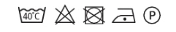 Waschbar bei 60 °C, trocknergeeignet (schonend). Keine Bleichmittel verwenden.