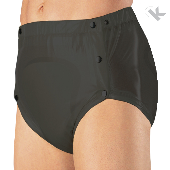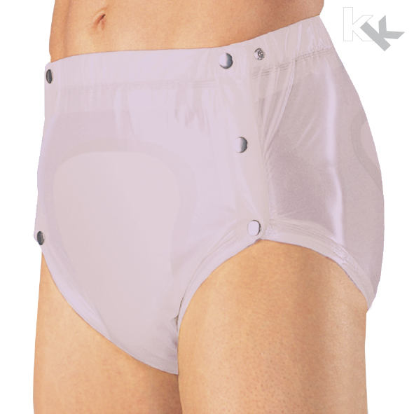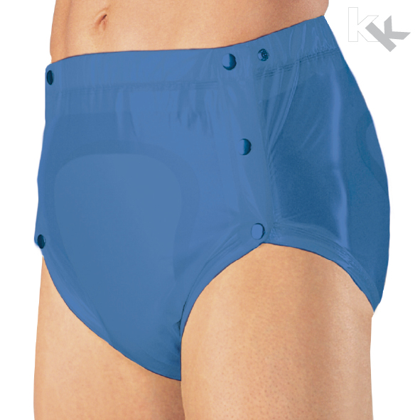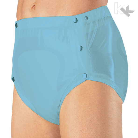 Der PVC-Slip für Damen und Herren ist geeignet bei mittlerer bis schwerer Blasenschwäche. PVC ist eine geschmeidige Spezialfolie, die cadmiumfrei und feuchtigkeitsundurchlässig ist. Durch stabile Metall-Druckknöpfe lässt sich der Slip schnell und einfach öffnen und die Einlage wechseln, dadurch ist er auch hervorragend für die Versorgung liegender Patienten geeignet. Durch die verschweißten Seitennähte bietet dieser Inkontinenz-Slip in Kombination mit einer saugfähigen Einlage besten Schutz vor dem Auslaufen von Flüssigkeit. Der breite Komfortbund sorgt für einen zusätzlichen Auslaufschutz auch im Liegen.  Waschbar bei 95°. Bitte keinen Weichspüler verwenden!