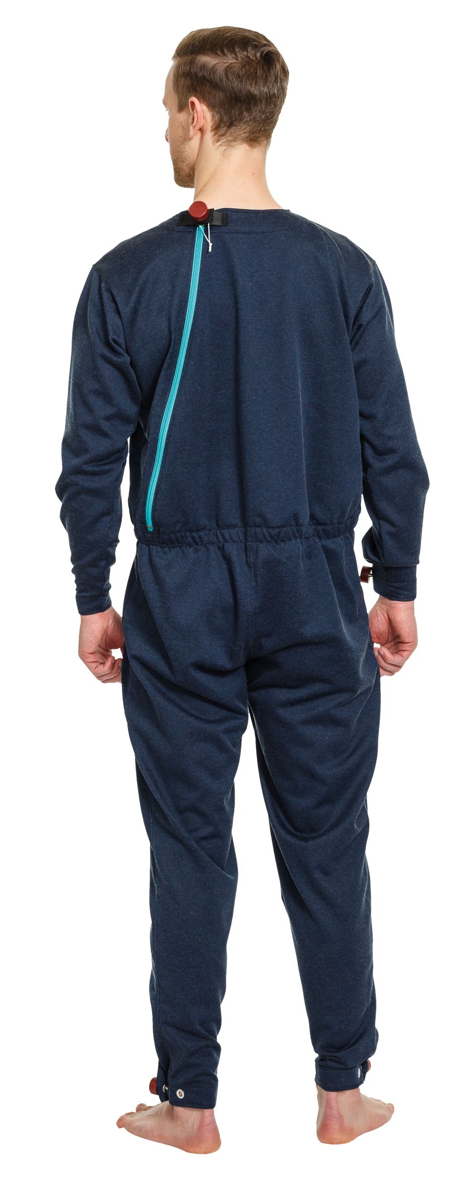 Dieser Pflegeoverall für Damen und Herren mit langem Arm und Bein ist besonders für die Pflege von unruhigen Patienten (zwanghaftes Entkleiden, Autoaggression, Zerreißen von Kleidung) geeignet. Der Overall hat eine Weitenverstellung der Arm- und Beinöffnung und eine Reißverschlusssicherung für gängige Magnetschlösser (nicht im Lieferumfang enthalten!). Die Nähte sind doppelt verstärkt und er hat einen schräg verlaufenden Rückenreißverschluss, der keine Druckstellen am Rücken hinterlässt. Waschbar bei 60° und Trocknergeeignet!