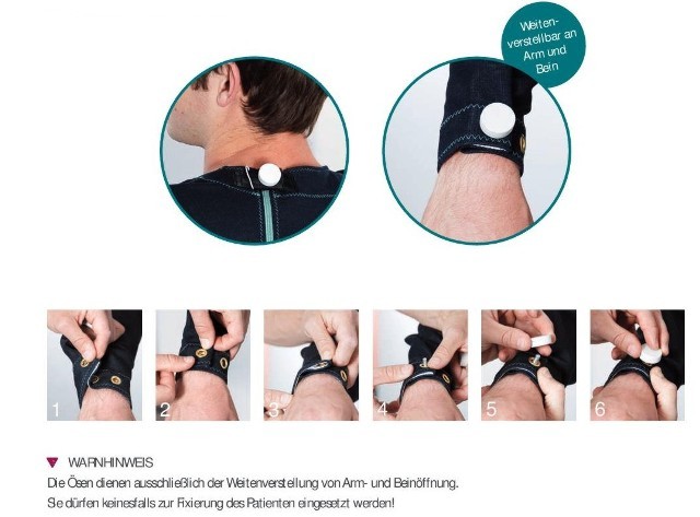 WARNHINWEIS: Die Ösen dienen ausschließlich der Weitenverstellung von Arm- und Beinöffnung. Sie dürfen keinesfalls zur Fixierung des Patienten eingesetzt werden!