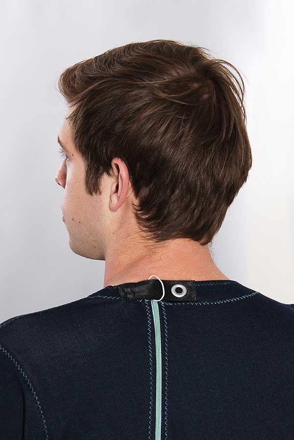 Der Sicherheitsknopf am Rückenreißverschluss verhindert ein selbstständiges Öffnen des Overalls. Diese Funktion schützt zuverlässig vor dem Entfernen von Inkontinenzmaterial und erleichtert gleichzeitig die Arbeit des Pflegepersonals.