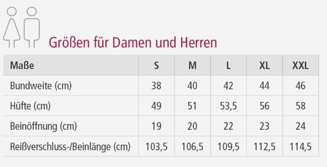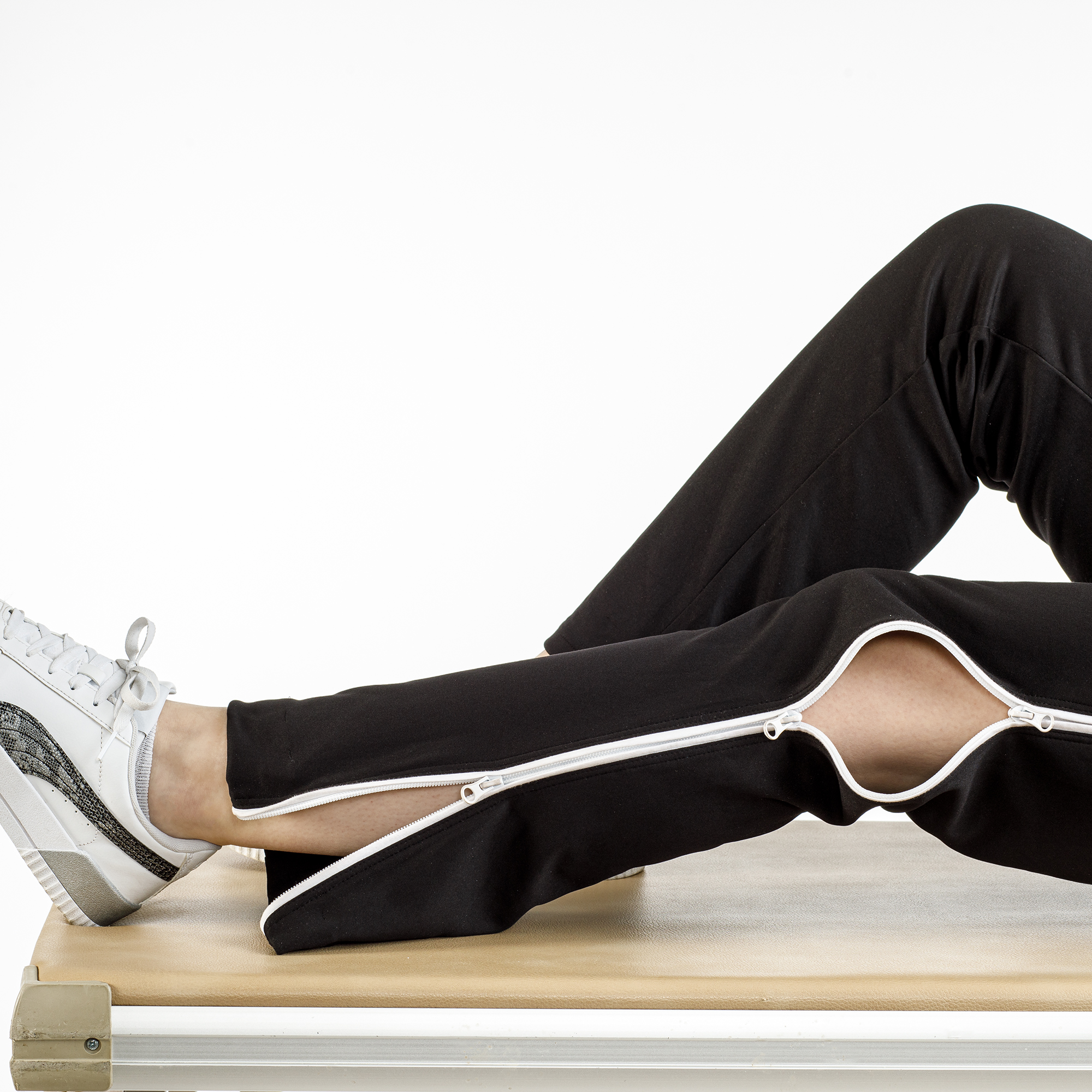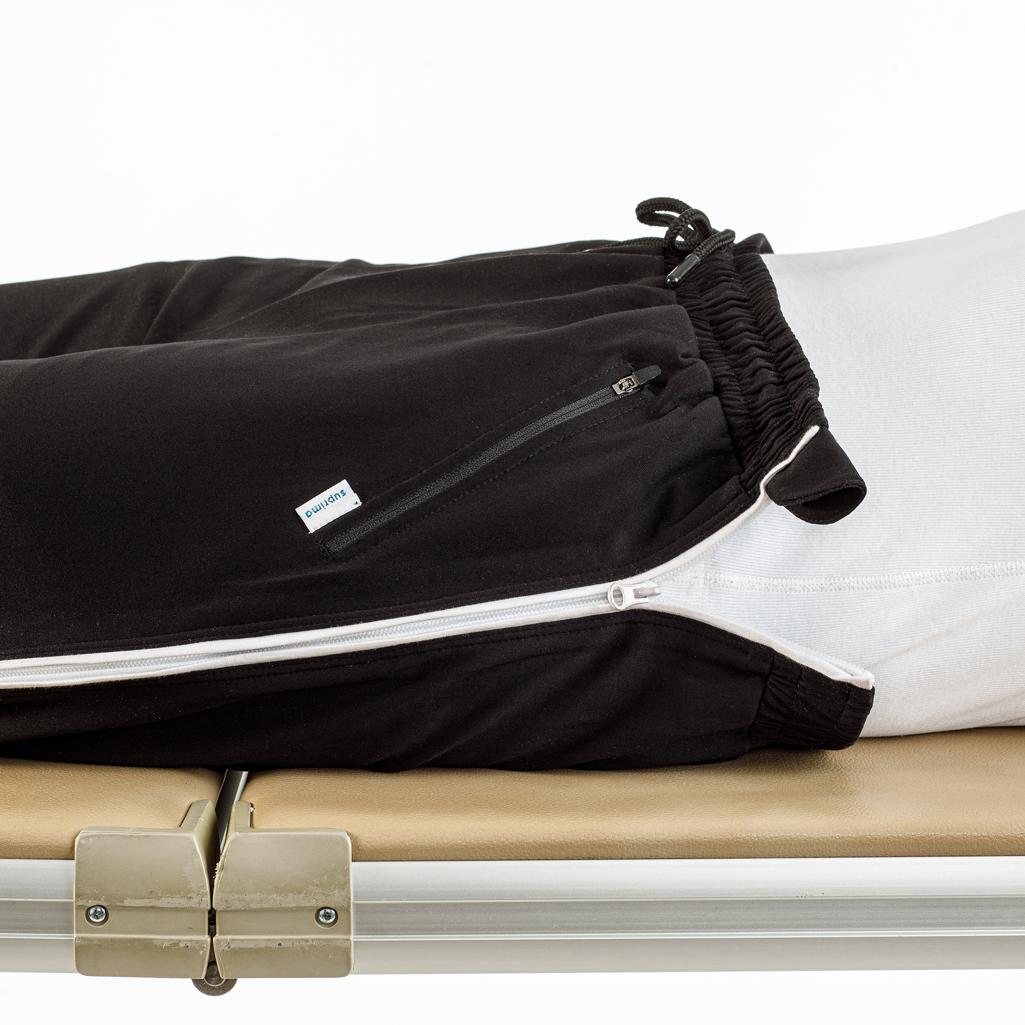 Ausgestattet mit einem hochwertigen 4-Wege-Reißverschluss an jedem Bein, ermöglicht die RehaFlex Therapiehose einen einfachen, komfortablen Zugang zu Bein und Hüfte, ohne dass der Patient die Hose ausziehen muss.
