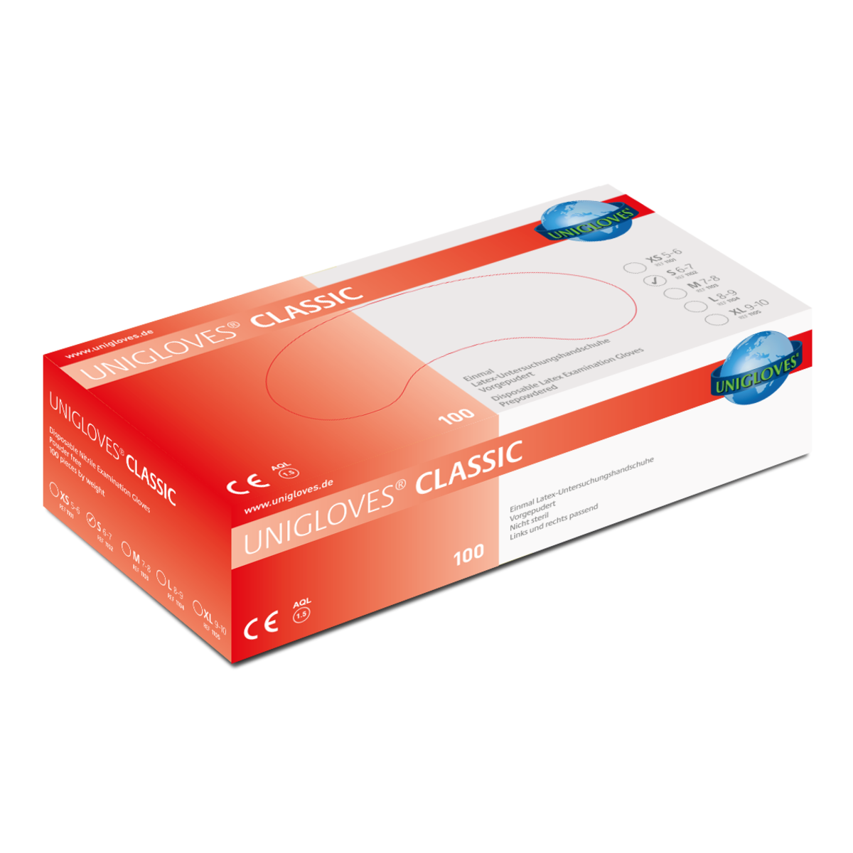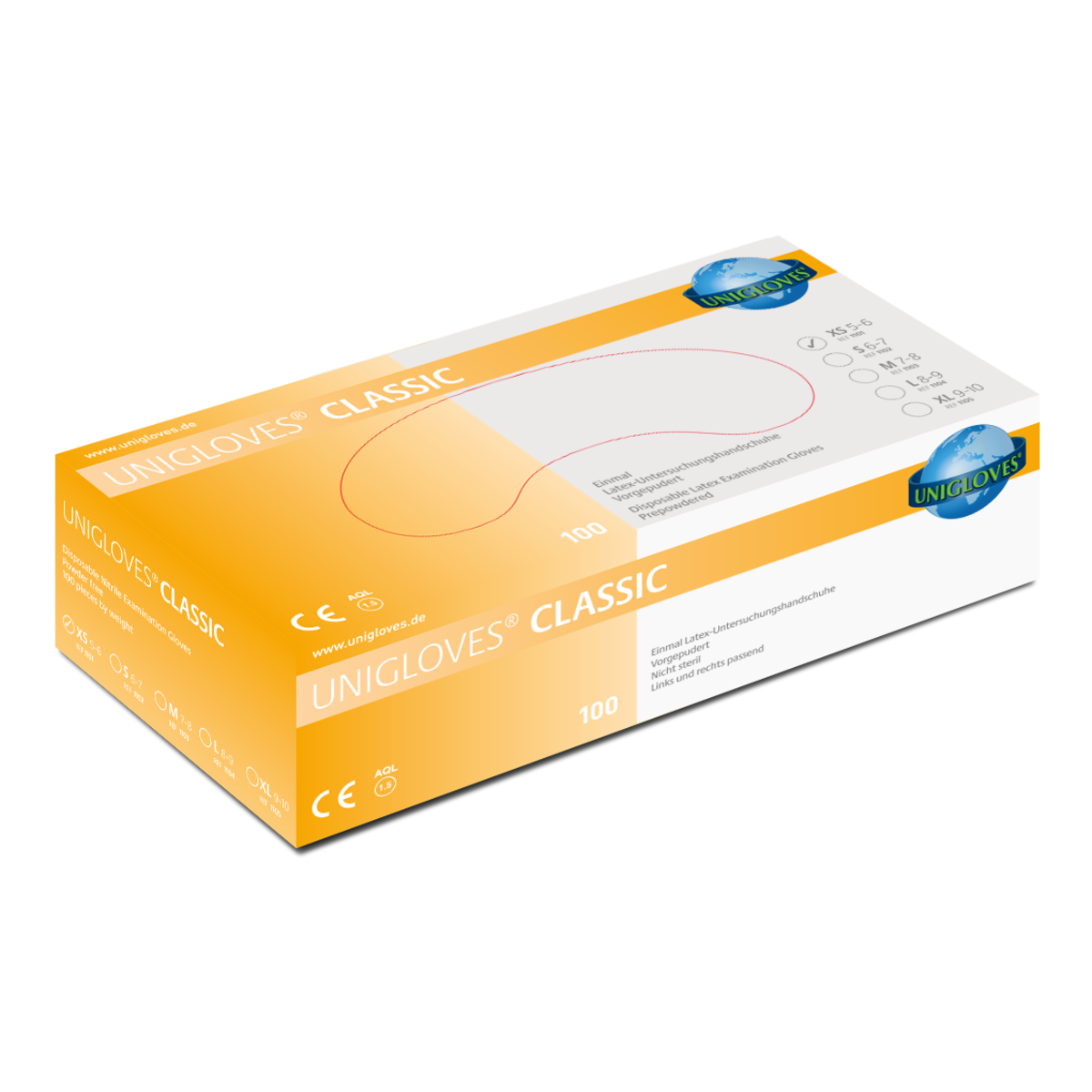 Unigloves Latexhandschuhe CLASSIC Box mit 100 St. / 5-6 x-small