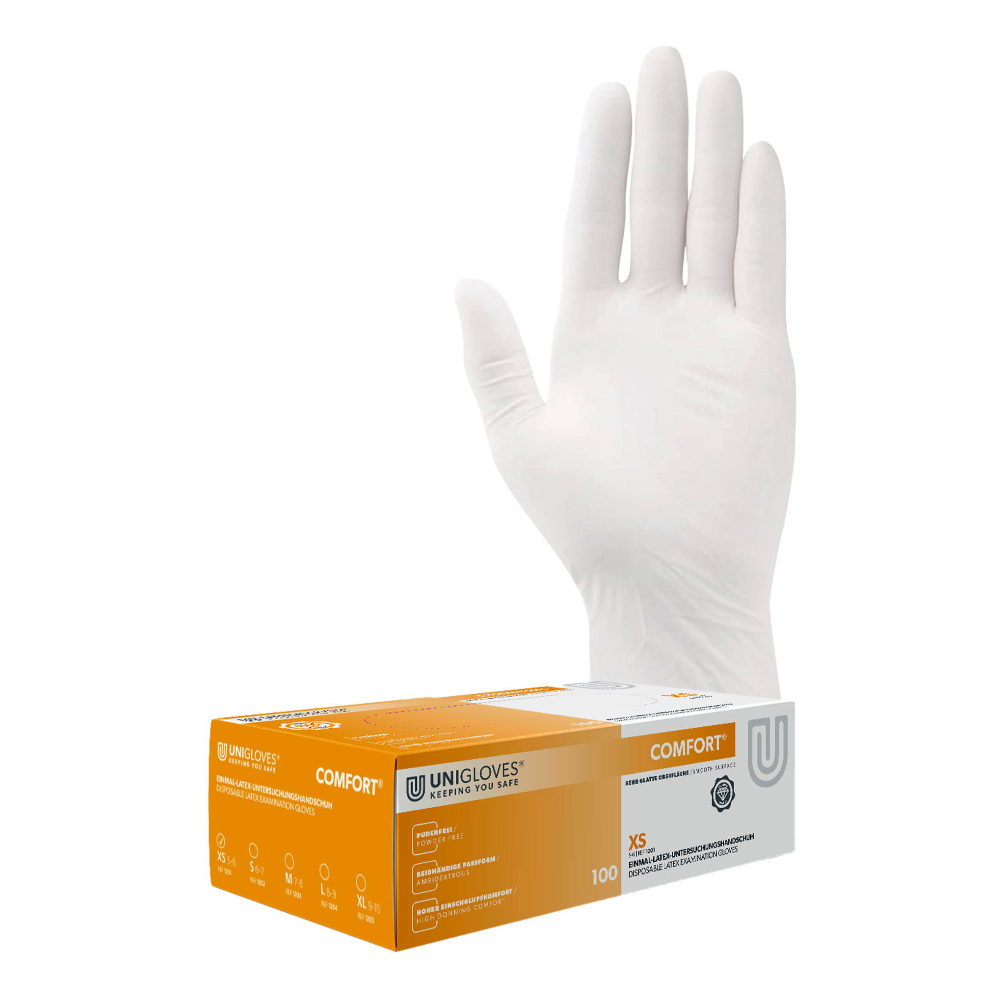 Unigloves Latexhandschuhe COMFORT Gr. 5-6 X-small 100 Stück/Box