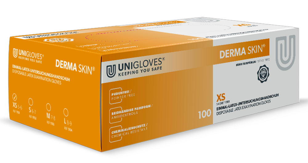 Unigloves Latexhandschuhe DERMA SKIN – 100 Stück/Box, Größen XS–L