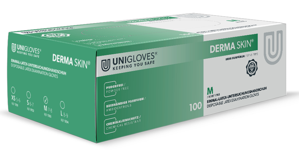 Unigloves Latexhandschuhe DERMA SKIN – 100 Stück/Box, Größen XS–L